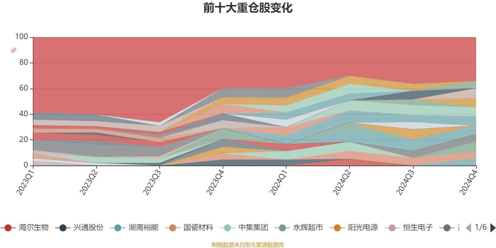 截至2024年四季度末,基金十大重仓股分别是永辉超市、海大集团、华勤技术、山推股份、柳工、志邦家居、燕京啤酒、湖南裕能、思源电气、国瓷材料。