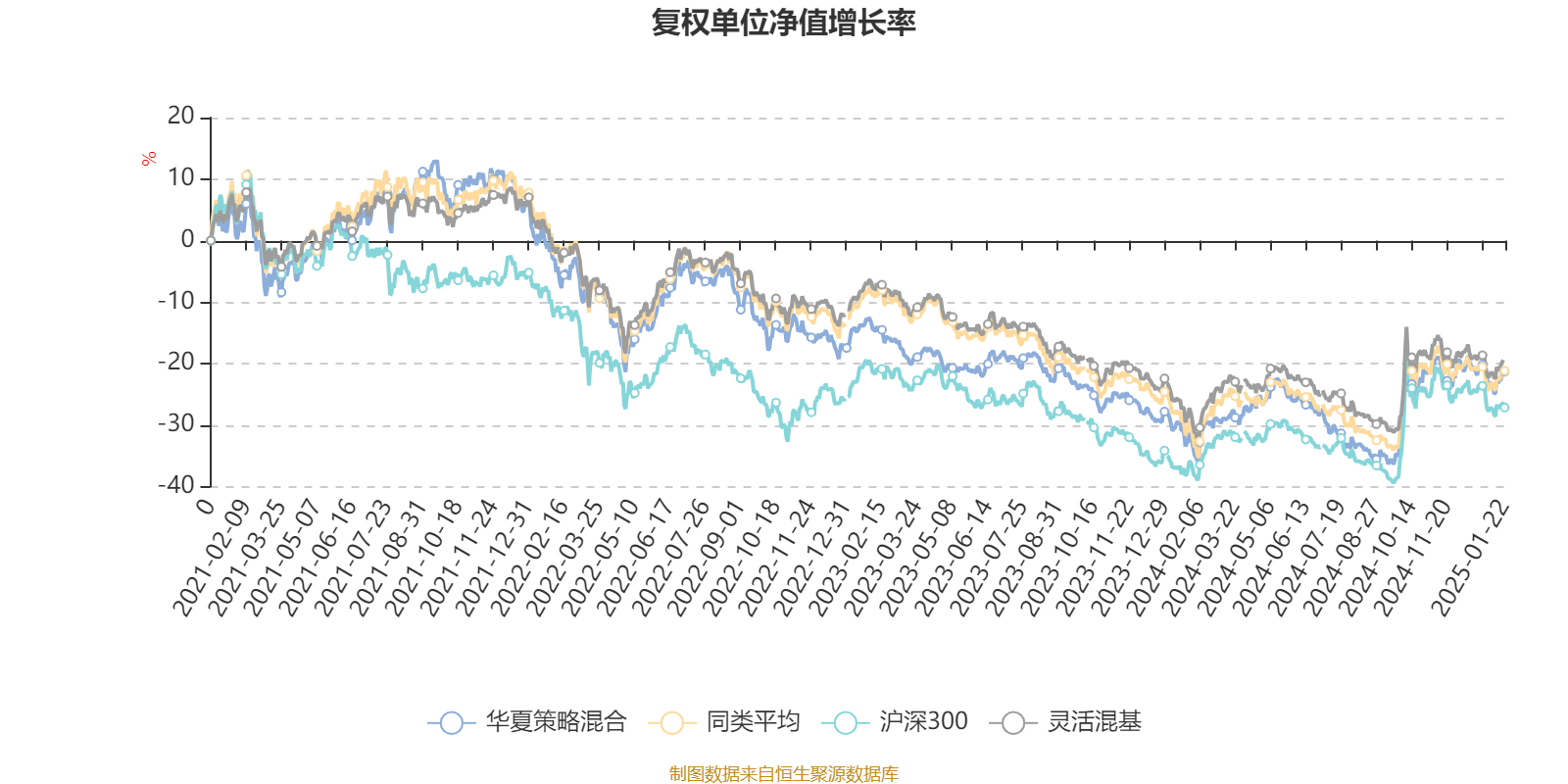 截至1月22日,华夏策略混合近三个月复权单位净值增长率为1.77%,位于同类可比基金193/920;近半年复权单位净值增长率为15.70%,位于同类可比基金186/920;近一年复权单位净值增长率为18.31%,位于同类可比基金319/920;近三年复权单位净值增长率为-20.29%,位于同类可比基金388/898。